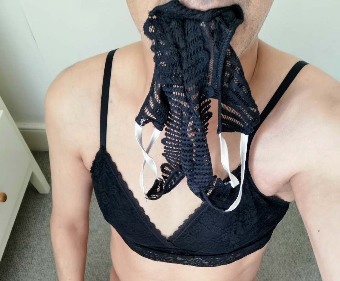 Option 3 – 7 days of clitty pleasure and pussy toys from now – kneel and beg in bra and panties, with yesterday’s panties in your mouth and the word ‘please’ written on your clitty… displayed with your panties tucked behind it. I can’t wait to see what you choose, my owned property. *dominant twinkle*