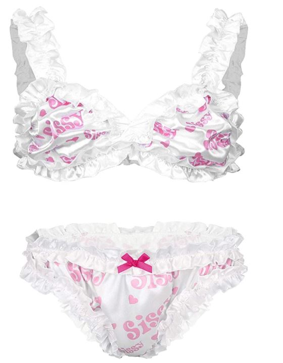 Obviously, if you don’t have a pair of the classic pink satin panties that I mention at the start of my guide, you really should start with these. If you want to go a step further, how about this set? I adore this, which is why I’ve bought it for my sissy girls more than once.