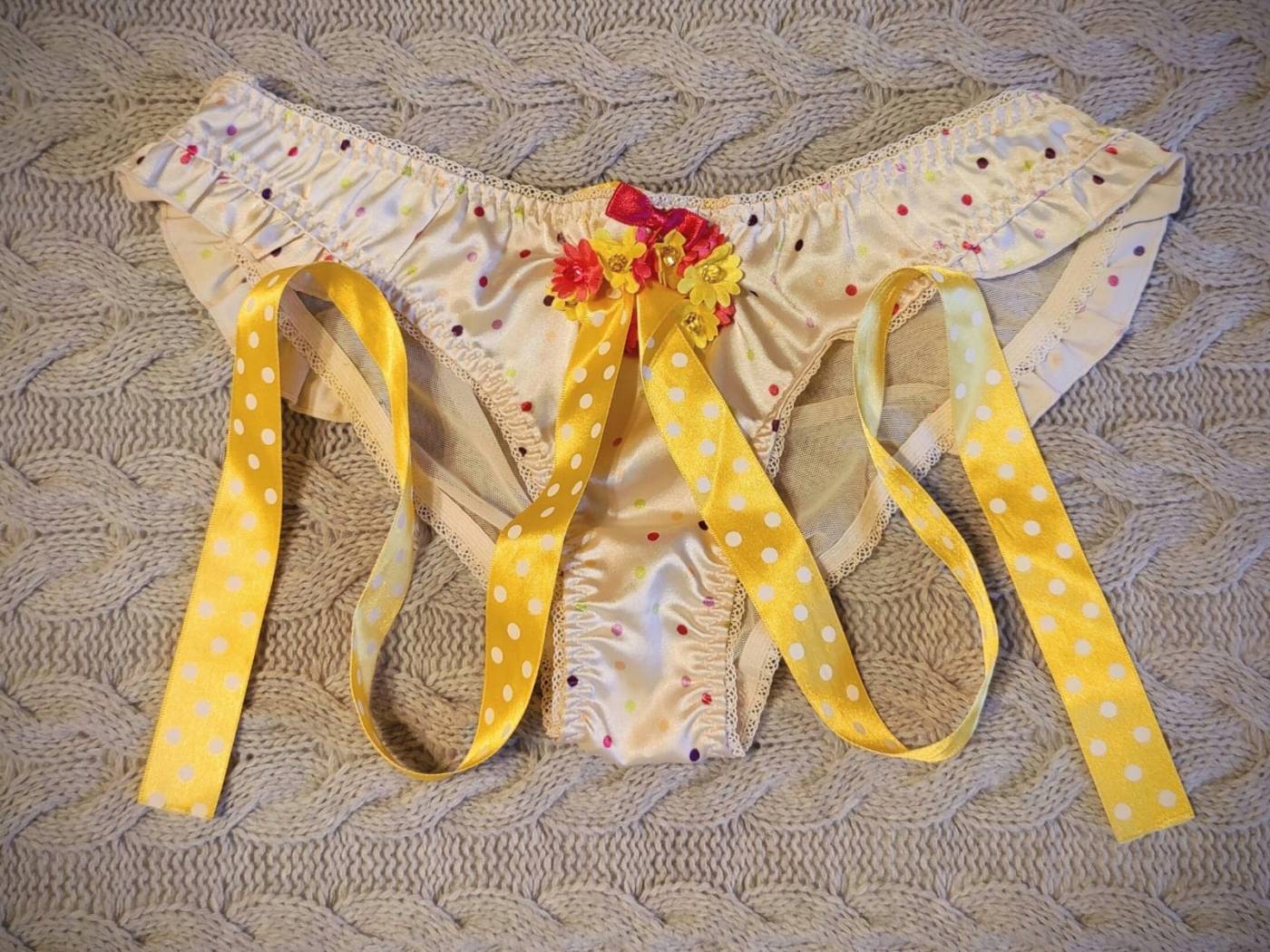 You might need to make your own show panties – a fun sissy task and I’d love to see the results if you do. However, if you’re not adept with a needle, thread and ribbon, I spotted these on thesissymarket.