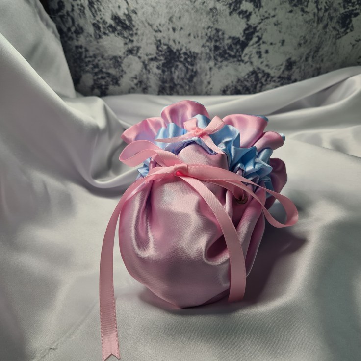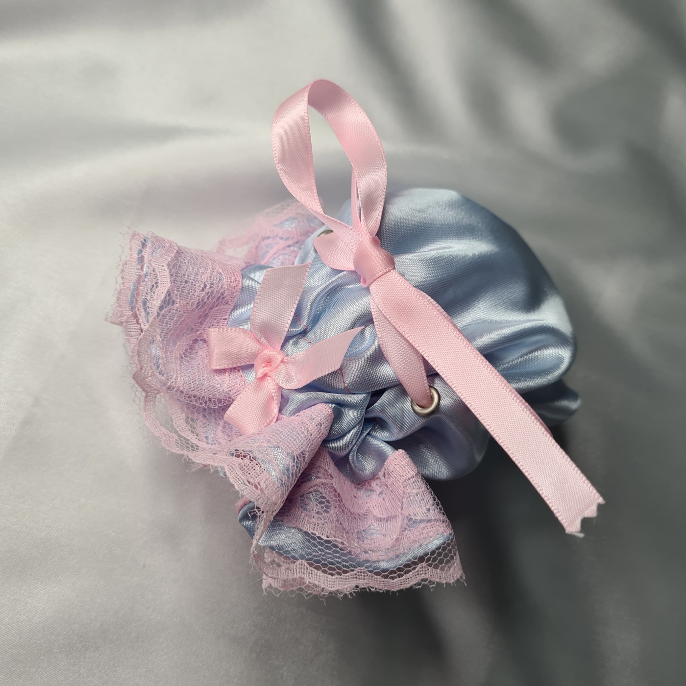 Satin. For me it’s the essence of sissification. So, I’ve finally started making satin clitty pouches. These are created from my Dominant fantasies of what I want a clitty pouch to look and feel like. Deluxe double-layered satin for that delicious slip-slide on your clitty, rubbing you with every move. Classic sissy colours of pale pink, baby blue, lush lilac and deep fuchsia. Adorned with pretty bows, wide frills and frothy lace.